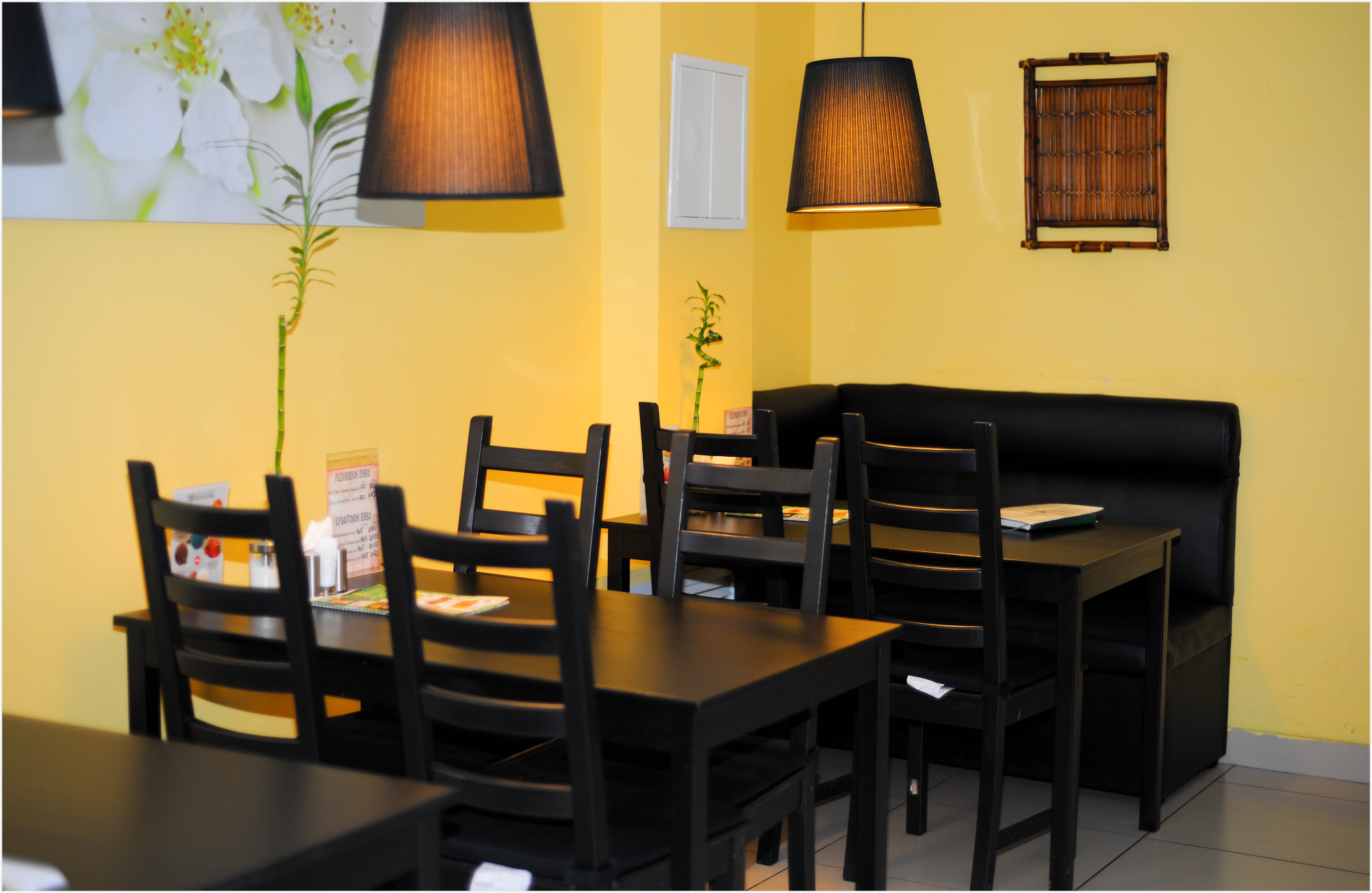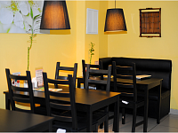 Эстетическая подача меню, превосходный интерьер и приветливость персонала не оставят равнодушным ни одного гостя. Кафе постоянно дарит своим посетителям подарки, организовывает розыгрыши призов и проводит акции. По картам клиента действует бонусная система скидок.