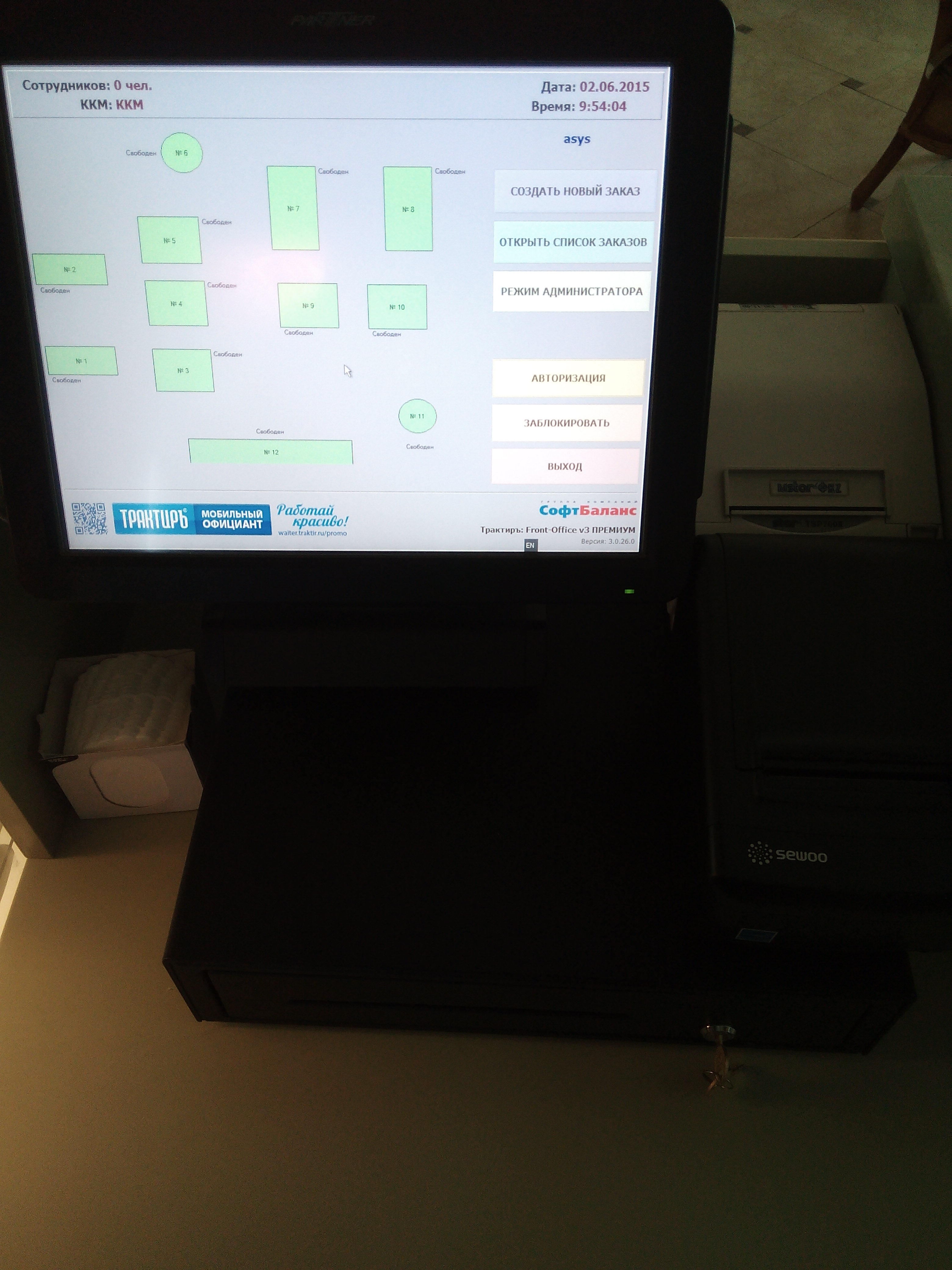 В ресторан на кассовое место был установлен Трактиръ: Front-Office v3 ПРЕМИУМ с моноблоком Partner Tech SP-600 15" и фискальным регистратором MSTAR-TK-KZ. В качестве станций официанта были предложены смартфоны Prestigio MultiPhone 5" с инновационным мобильным приложением iRECA: Официант, которые позволили сотрудникам оформлять заказы непосредственно у стола посетителя и сразу же передавать их в Трактиръ: Front-Office и на кухню по средствам сетевых принтеров Sewoo LK-TЕ122.