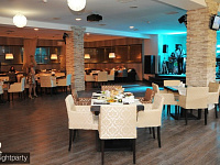 Основной зал — 150 мест, барная стойка — 14 мест.