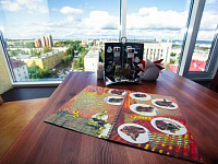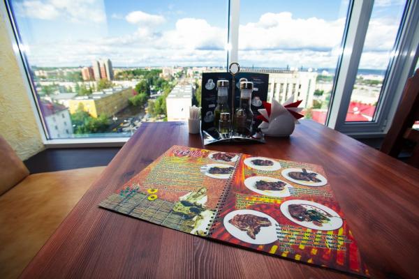 Одной из изюминок кафе является панорамный вид на город Петрозаводск. Также это одно из немногих мест в нашем городе, где можно попробовать настоящие стейки. Отборное мясо мгновенно схватывается в специальной печи-хоспере и остается необыкновенно сочным и ароматным. Гурманы оценят мраморную говядину зернового откорма. От сортового мяса, привезенного из Австралии до простых и таких вкусных куриных крылышек и овощей – все становится особенным в хоспере.