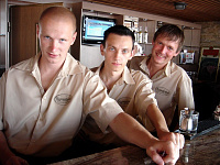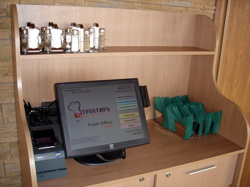 В ресторане используется 3 принтера рулонной печати (горячий, холодный цеха кухни со звонками KL-100, печать отчетов и счетов) Aura-5200,Фискальный регистратор Шрих ФР К, 5 сенсорных терминалов.