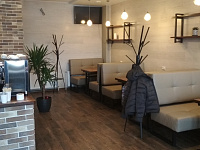Кафе находится на территории автокомплекса и рядом с мойкой самообслуживания. Небольшое уютное помещение с очень вкусным меню и интересной кофейной картой пользуется особенной популярностью в обеденное время.