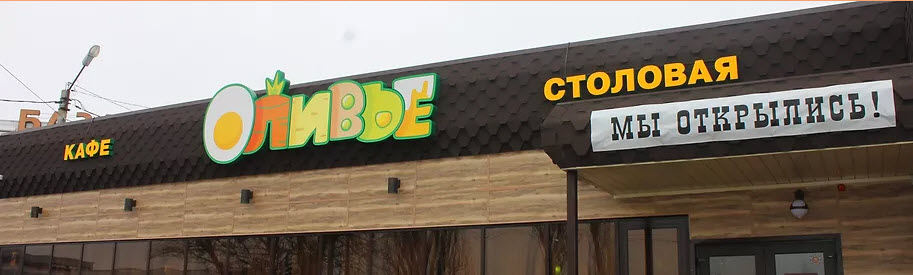 Главная прелесть оливье в том, что у каждого он свой - самый правильный и самый вкусный. В кафе Оливье каждый посетитель найдет что-то своё. Смешение стилей в дизайне и кухне - вот секрет успеха кафе.