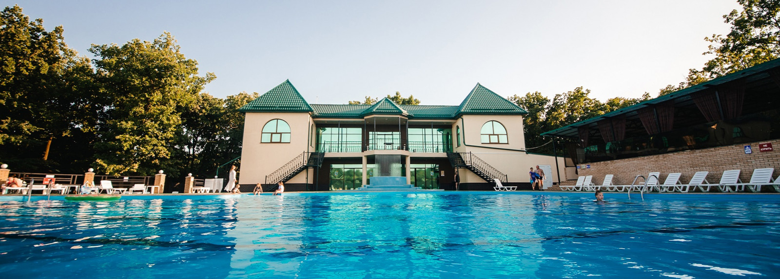 На территории комплекса расположен уютный ресторан, предлагающий гостям изысканные блюда русской и европейской кухни.